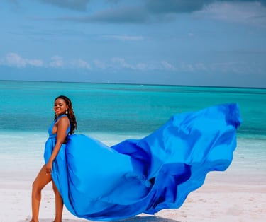 Capture the magic of Zanzibar with an elegant fly-dressing photoshoot that blends the island’s breathtaking beauty with your unique style. Picture yourself adorned in flowing, vibrant fabrics that dance in the ocean breeze, framed by Zanzibar’s stunning landscapes.